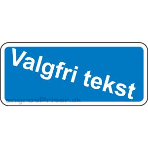 Design selv din undertavle, enten ved selv at skrive på din undertavle eller lad os trykke den ønskede tekst. Undertavlerne med valgfri tekst kan fås med både hvid, blå og sort baggrund og i alle standard skiltestørrelser. Skal vi lave teksten på dit skilt vælger du en af undertavlerne med valgfri tekst og din tekst i feltet, der rummer enten 15, 30 eller 45 tegn. Vi er billige med vores skilte og køber du mere end 1 stk, bliver du belønnet med ekstra stor rabat.